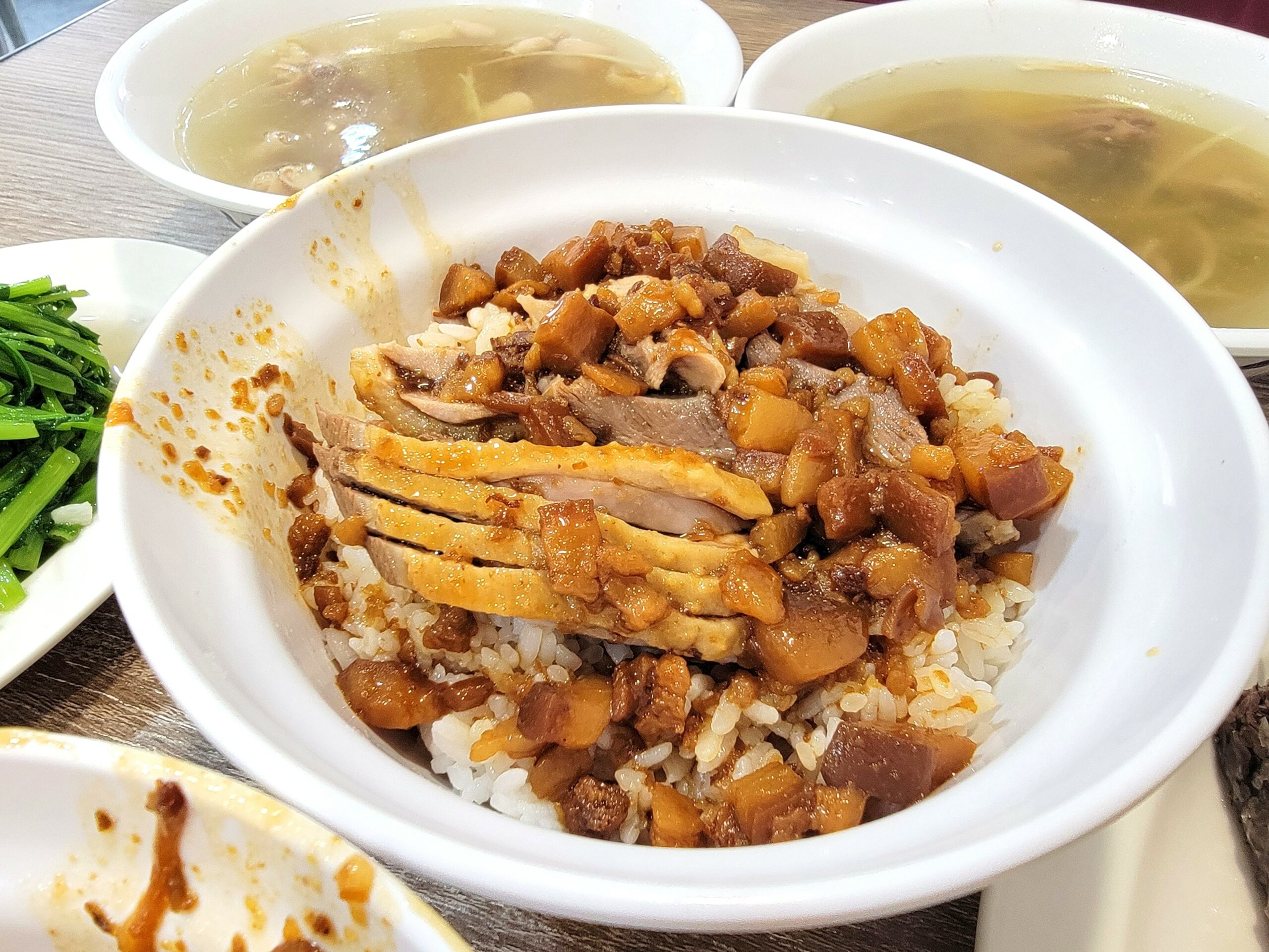 蟬聯必比登推薦的鹽埕傳奇,靈魂在於那碗油亮誘人的肉燥鴨肉飯,鴨肉鮮嫩多汁、完全不乾柴,配上一碗料多實在的下水湯,這份跨越時光的鹹香滋味,是港都最豪邁也最經典的人情味風景~!