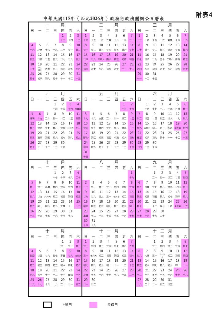 📅 2026 年國定假日與連假一覽