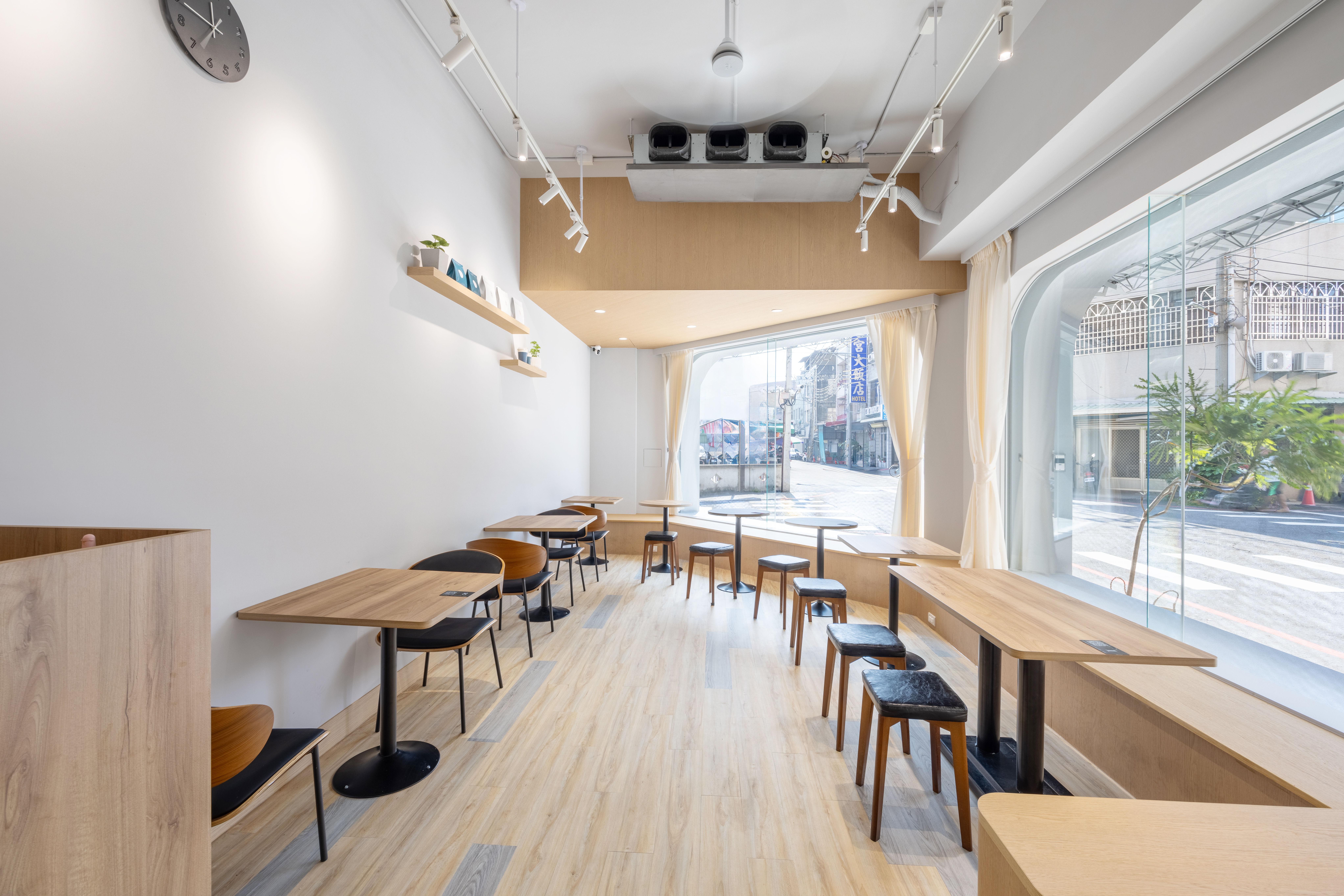 📍 店家環境:純白極簡空間,對望廟宇屋簷的新舊美學