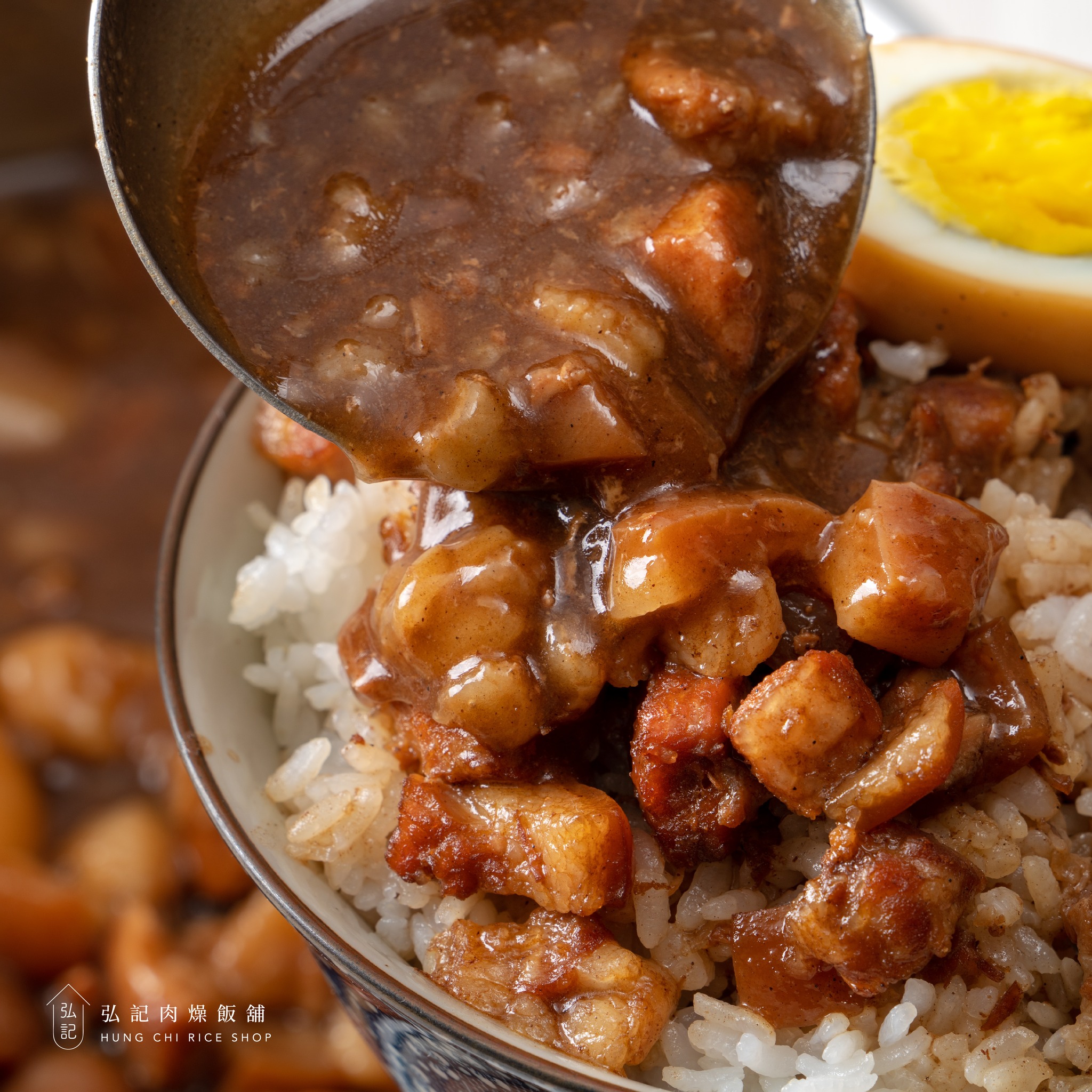 - 米飯與溫度的絕對堅持: 弘記非常注重基底米飯。選用飽滿且富有彈性的台灣好米,煮得粒粒分明,確保淋上濃郁滷汁後,米粒依然能保持 Q 彈不軟爛。那股熱騰騰的蒸汽帶著滷汁香氣撲鼻而來,這就是最簡單也最難得的極致美味!